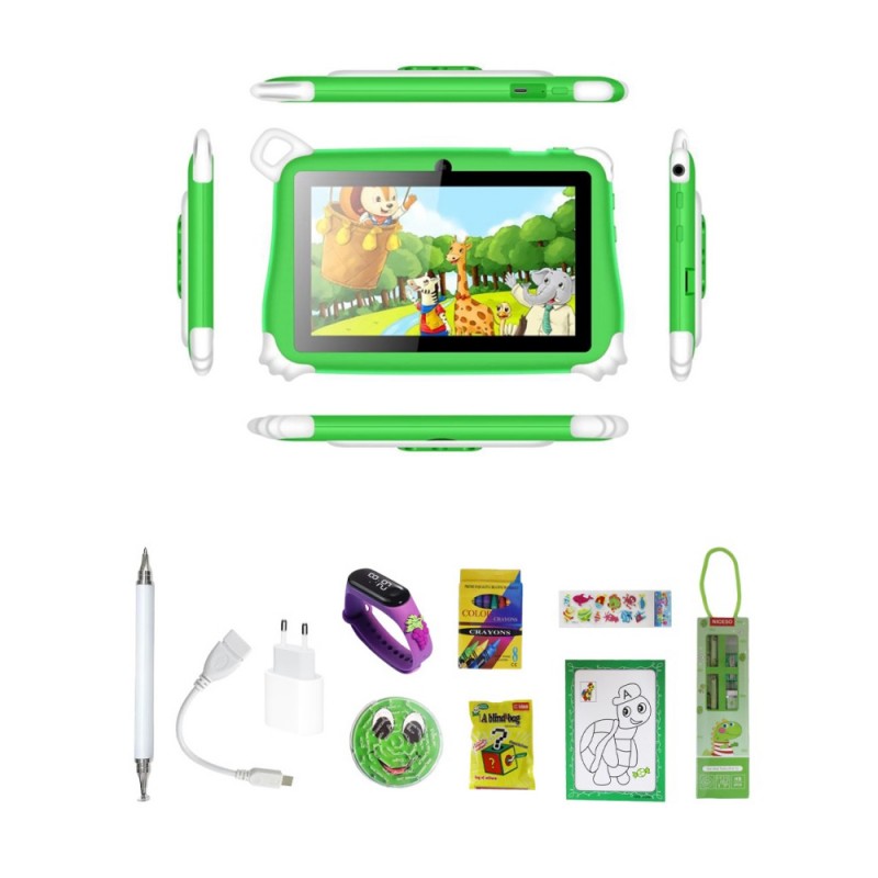 Incluye: Reloj inteligente - Lápiz capacitiva - Fuente - Cable - Juegos didacticos - Premio sorpresa - Stickers - Lapices y crayolas